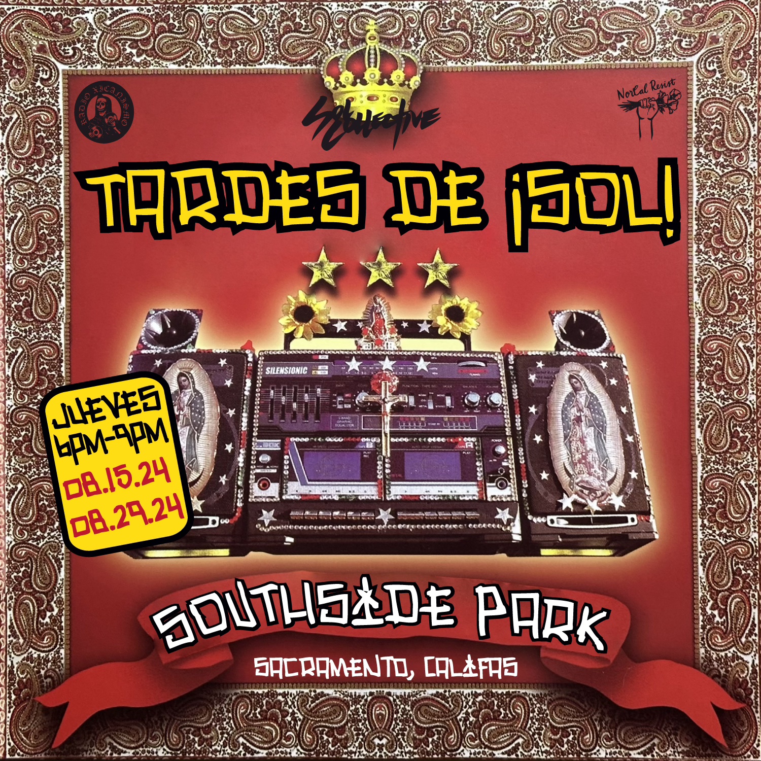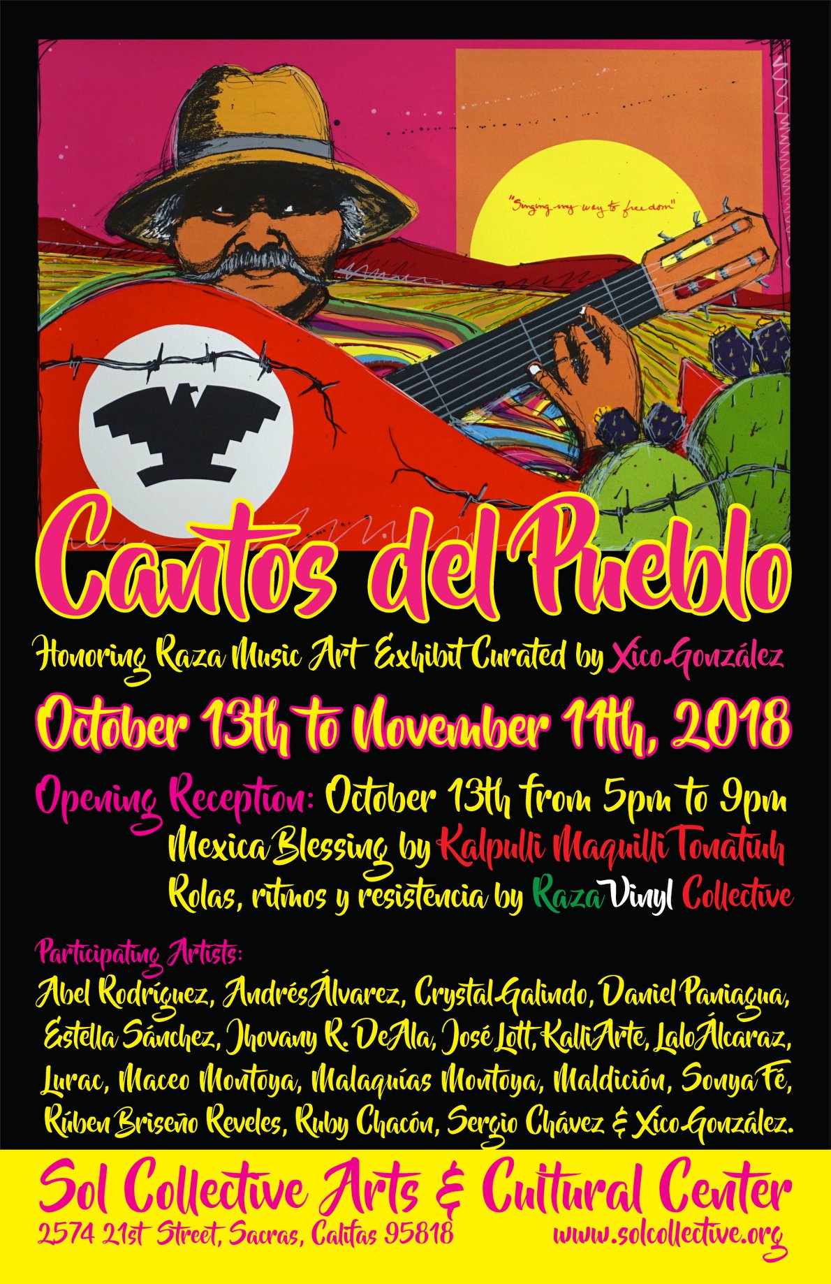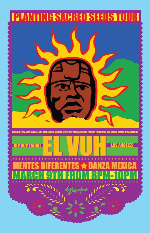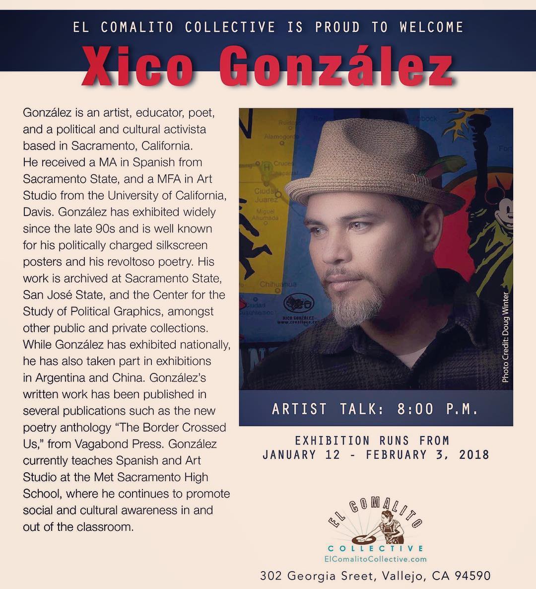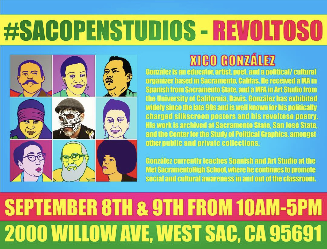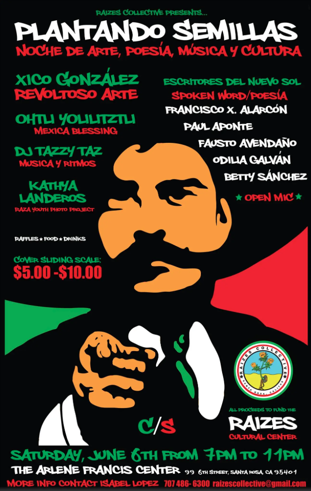 Sol Collective presents “Redes & Reflexiones” Art Exhibit from January 20th to March 2nd, 2024. This exhibit features new works by Dominick Porras and Xico González. This is the first time these colegas with a shared history that spans over two decades will present a two person show to their community. Porras will offer new works in a multidisciplinary style developed after completing his Master of Fine Arts in Art Studio at the Institute of American Indian Arts in Santa Fe, New Mexico. González, who holds a Master of Fine Arts in Art Studio from the University of California at Davis will offer new serigraphy works in solidarity with Palestine.