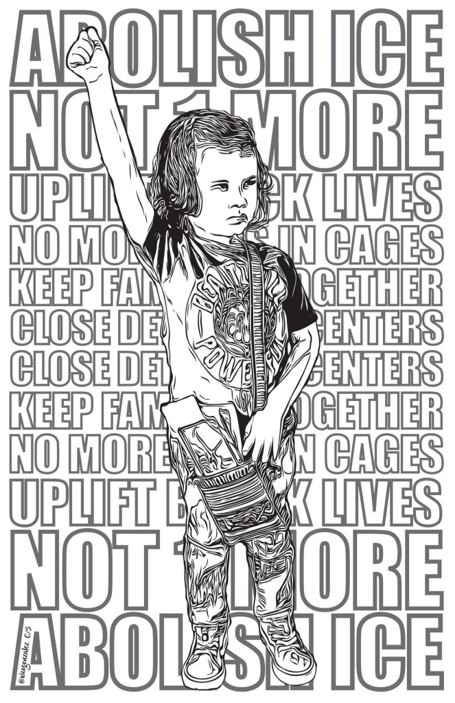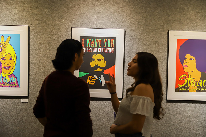 Hermosa Rebeldía features selected works that were used in the frontlines of the struggle for equity and social justice. The posters address issues related to unjust immigration laws, police brutality, Indigenous rights, educational access, Black Lives Matter, decolonization, Islamophobia, and other social issues affecting underrepresented communities. The works in the exhibition were created digitally and printed as single banners and as posters in editions ranging from 100 to 2500 copies over the past 15 years. These posters were given to the masses to visually enhance our collective voices in rallies, marches, and protests. The posters were distributed in Sacramento, Stockton, Santa Rosa, Oakland, San Francisco, Los Ángeles, and other cities in California, and the United States.