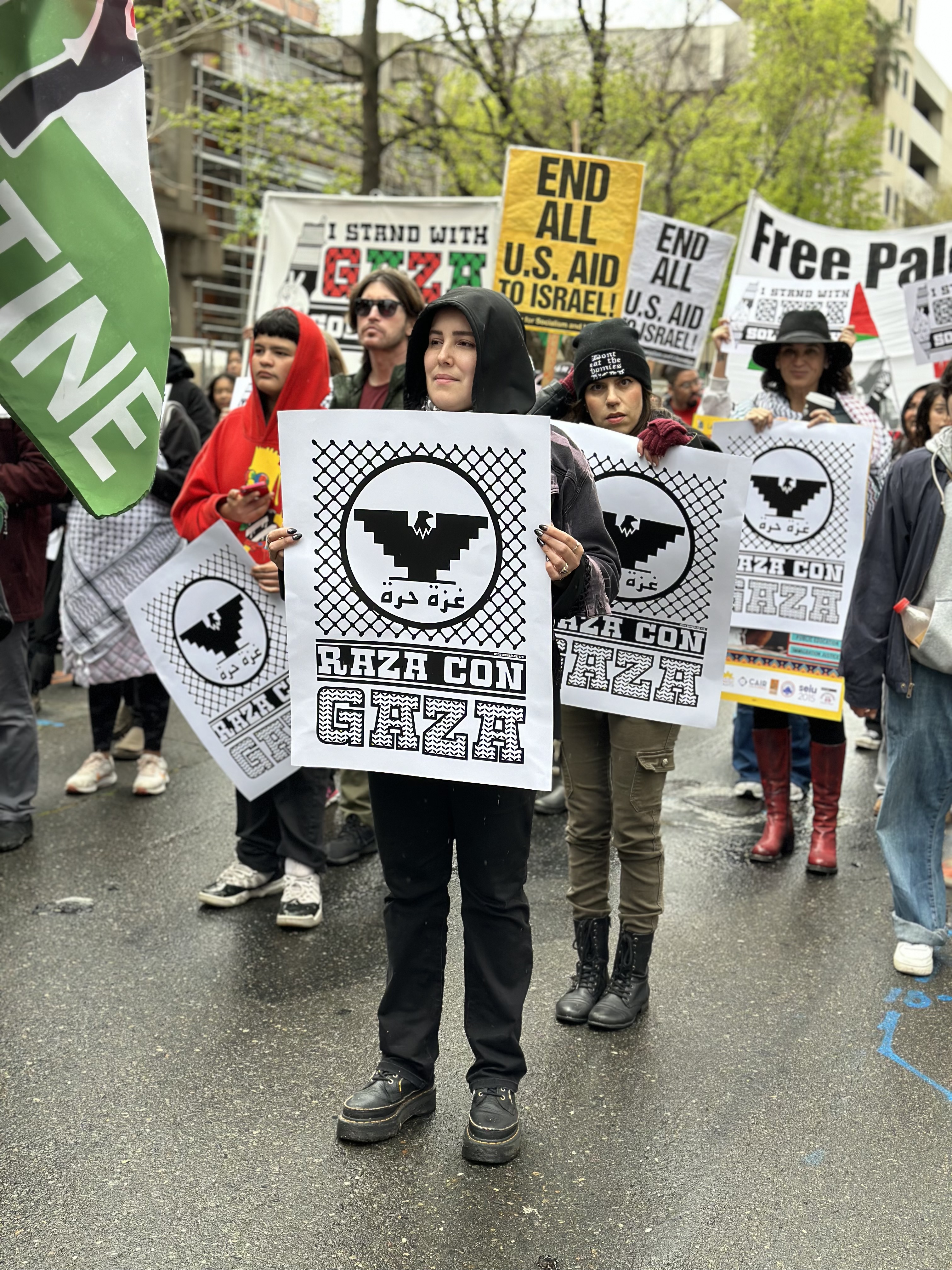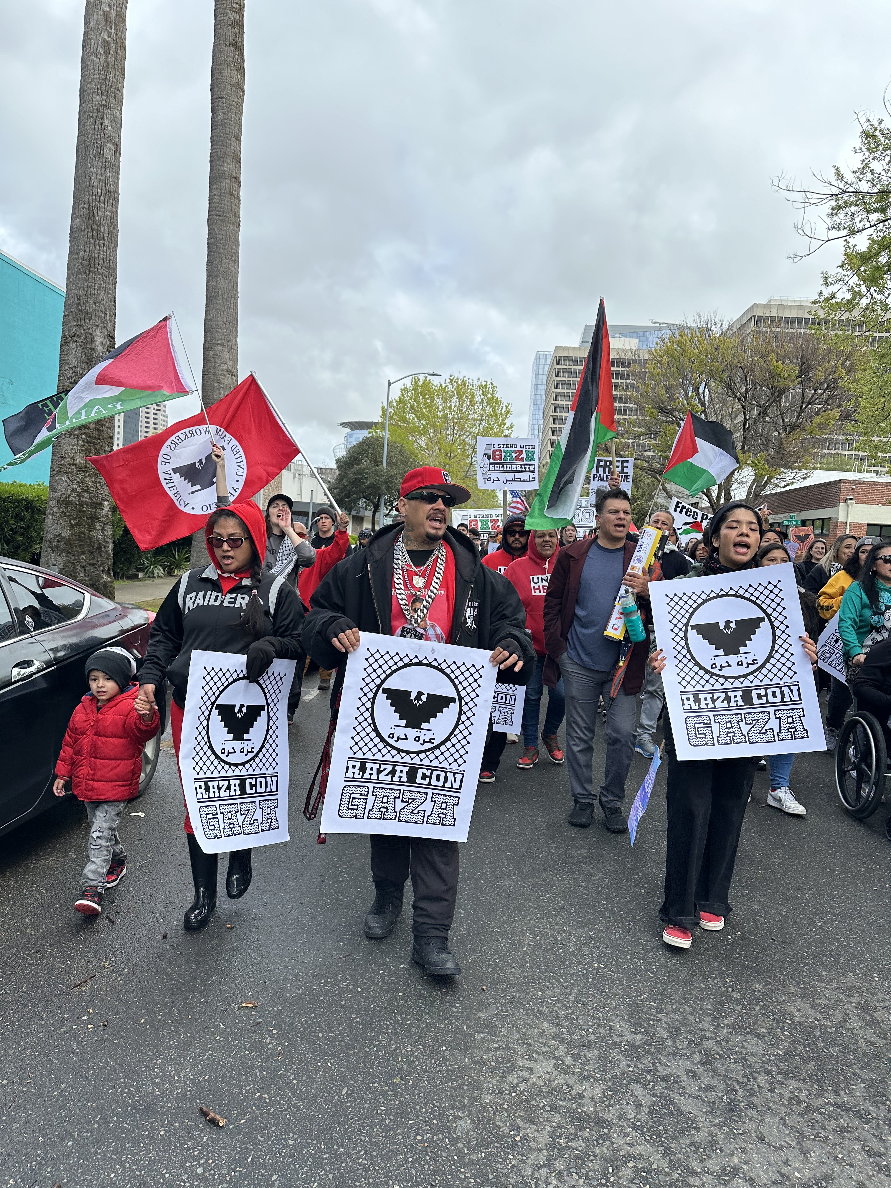 In Sacramento, I organized a Raza solidarity event with my carnalas Ruth Ibarra and Irene de Barraicua Sponsored by NorCal Resist. We invited Youth 4 Palestine to contribute their voices and their presence at this solidarity event. We started with a rally at Southside Park, and then we marched through downtown Sacramento and ended with another rally at Sacramento City Hall while the city council officials held their monthly meeting. Check out this video documenting the event by Mo Alagi: